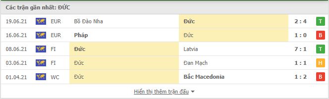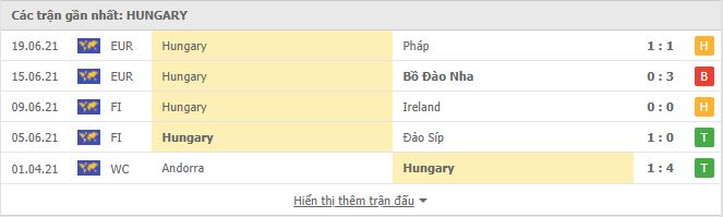 Thống kê phong độ gần đây Đức vs Hungary