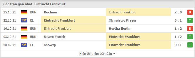 Thống kê phong độ gần đây Eintracht Frankfurt vs RB Leipzig