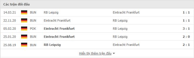 Thành tích đối đầu Eintracht Frankfurt vs RB Leipzig