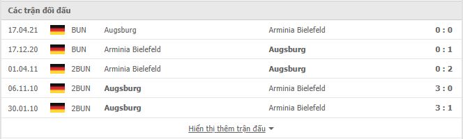 Lịch sử đối đầu FC Augsburg vs Arminia Bielefeld