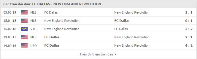 Lịch sử đối đầu FC Dallas vs New England Revolution
