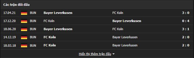 Thành tích đối đầu FC Koln vs Bayer Leverkusen:
