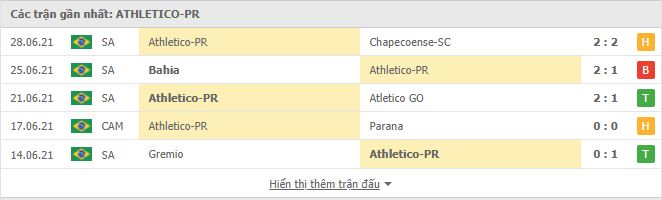 - Phong độ Atletico Paranaense
