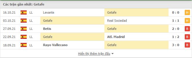 Thống kê phong độ gần đây Getafe vs Celta Vigo