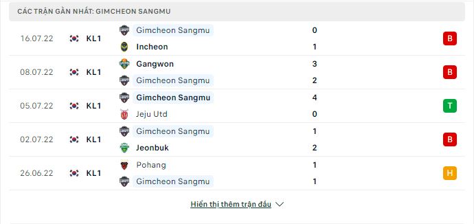 Phong độ gần đây Gimcheon Sangmu vs Pohang Steelers
