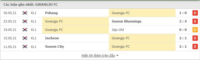 - Phong độ Gwangju FC