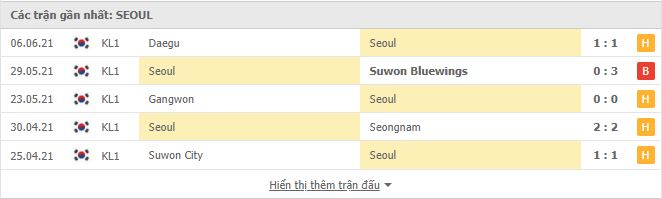 Thống kê phong độ gần đây Gwangju FC vs FC Seoul