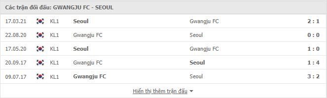 Lịch sử đối đầu Gwangju FC vs FC Seoul