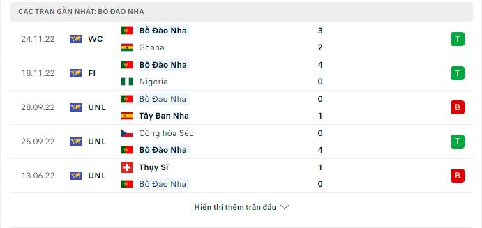 Phong độ gần đây Hàn Quốc vs Bồ Đào Nha