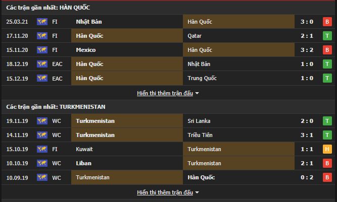 Phong độ gần đây Hàn Quốc vs Turkmenistan: