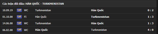 Thành tích đối đầu Hàn Quốc vs Turkmenistan:
