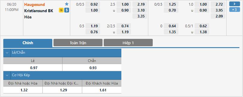 Bảng tỷ lệ kèo bóng đá Haugesund vs Kristiansund BK