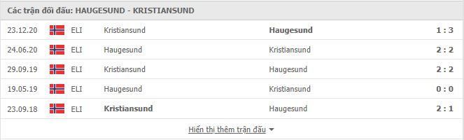 Lịch sử đối đầu Haugesund vs Kristiansund BK
