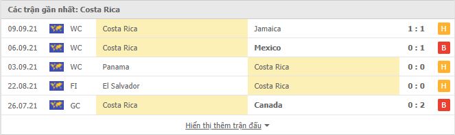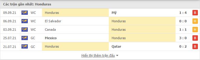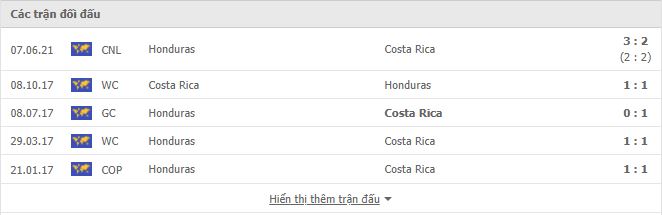 Thống kê phong độ gần đây Honduras vs Costa Rica