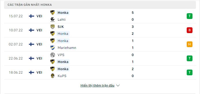 Chặng đường đã qua ở giải VĐQG Phần Lan mùa giải năm nay chứng kiến phong độ chấp nhận được của Honka. Có thể không phải đội bóng được đánh giá cao như HJK Helsinki hay KuPS nhưng thành tích với 8 chiến thắng, 3 trận hòa cùng 3 trận thua ở 14 vòng đấu vừa qua của các học trò HLV Vesa-Pekka Vasara là không hề thua kém 2 đội bóng đang dẫn đầu BXH. Không những thế sự ổn định của đội chủ nhà còn được thể hiện qua thống kê với 4 chiến thắng, 2 trận hòa và chỉ phải nhận 1 trận thua ở 7 vòng đấu gần nhất.
