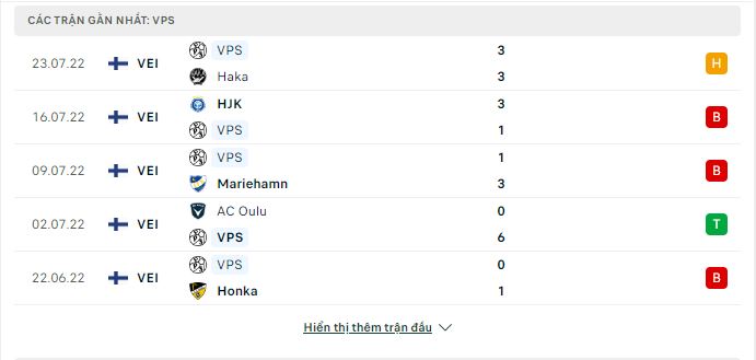 Trong khi đó, VPS Vaasa sau quãng thời gian đầu tiên có kết quả chấp nhận được đang cho thấy dấu hiệu chững lại về phong độ. Sau 15 vòng đấu đã qua tại sân chơi cao nhất Phần Lan, các học trò HLV Jussi Nuorela đang có 17 điểm với 5 chiến thắng, 2 trận hòa cùng 8 thất bại. Tuy nhiên ở 5 vòng đấu gần nhất, tân binh của Veikkausliiga 2022 lại đang có thành tích khá tệ với duy nhất 1 chiến thắng, 1 trận hòa cùng 3 lần tay trắng.