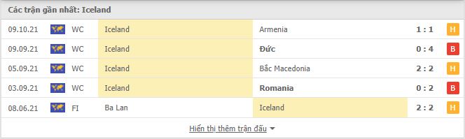 Thống kê phong độ gần đây Iceland vs Liechtenstein