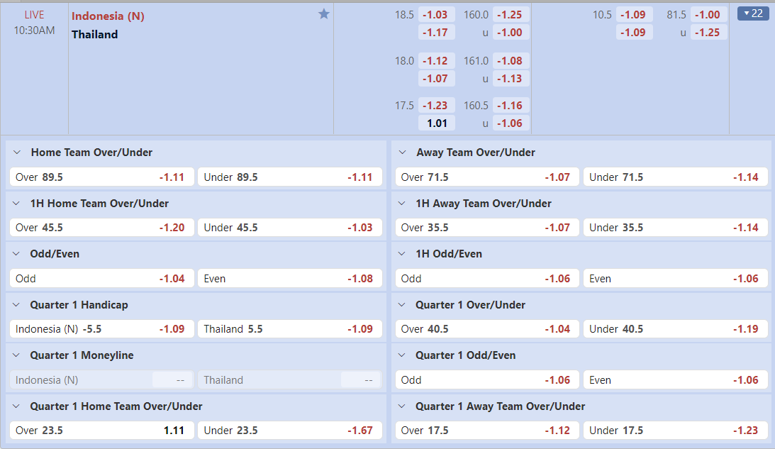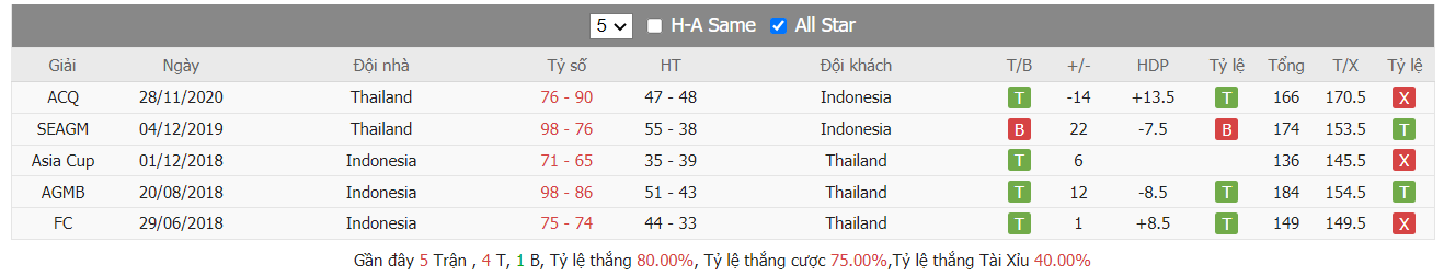 Bảng tỷ lệ kèo Indonesia vs Thailand