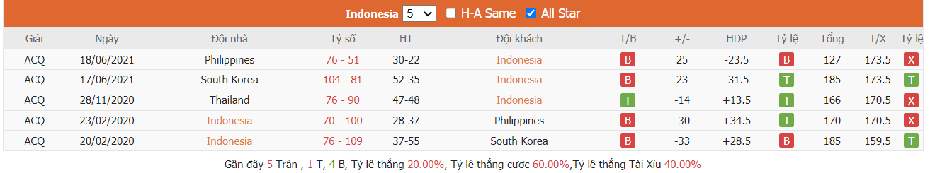 Thống kê cho thấy cả hai đội đều đang duy trì được sự hiệu quả về khả năng ghi điểm trong lối chơi khi mà Philippines cũng đã thành công bỏ vào rỗ đối thủ trung bình tới 92 mỗi trận trong tổng số 2 trận đón khách được ra sân ngay trên sân nhà gần nhất, tuy nhiên đội bóng này cũng cần củng cố lại hệ thống phòng thủ khi đã để mất trung bình tới 88 điểm mỗi trận trong thời gian kể trên. Bên kia sân đội khách Indonesia cũng không quá kém cõi khi mà đội khách Indonesia cũng đã ghi được trung bình tới 88 điểm mỗi trận và cũng đã để mất tới 86 điểm mỗi trận trong tổng số 5 trận ra sân gần nhất. Như vậy cửa tài cũng được đánh giá cao ở trận tới khi mà đã có tới 10 trên tổng số 14 trận so tài gần nhất của hai bên đều đã khép lại với các kết quả chung cuộc nổ tài.