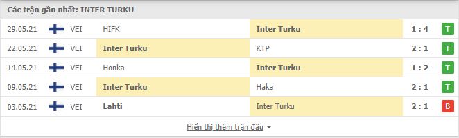 Thống kê phong độ gần đây Inter Turku vs IFK Mariehamn