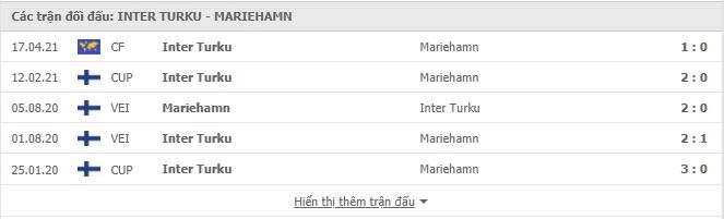 Không chỉ có điểm tựa sân nhà cùng phong độ thuyết phục hơn đối thủ, Inter Turku cũng đang nhận được sự ủng hộ không nhỏ từ lịch sử. Thống kê ở 10 lần gặp nhau gần nhất cho thấy sự vượt trội của các nhà đương kim Á quân với 8 chiến thắng, hai đội hòa nhau 1 lần và IFK Mariehamn chỉ có duy nhất 1 lần ca khúc khải hoàn. Trong 8 lần làm khách tại Veritas gần nhất, các học trò HLV Lukas Syberyjski có duy nhất 1 trận hòa cùng 7 lần nếm trái đắng.