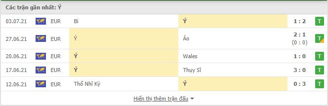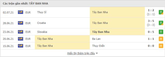 Thống kê phong độ gần đây Italia vs Tây Ban Nha