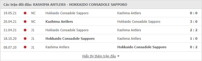 Thành tích đối đầu Kashima vs Consadole Sapporo
