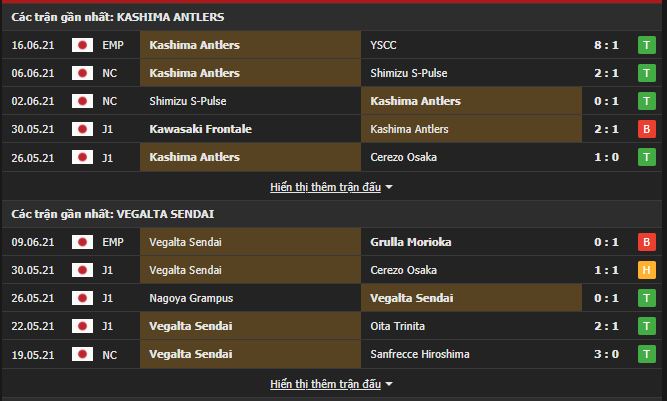 Phong độ gần đây Kashima vs Vegalta Sendai: