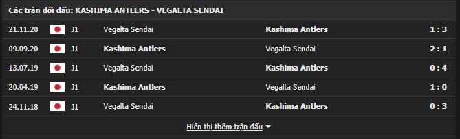 Thành tích đối đầu Kashima vs Vegalta Sendai: