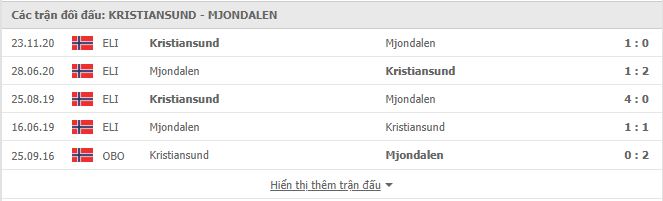 Lịch sử đối đầu Kristiansund BK vs Mjondalen