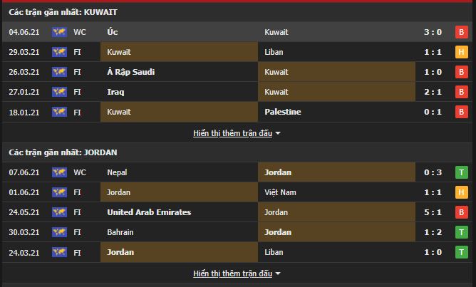 Ở cuộc đọ sức gần nhất, hai đội bất phân thắng bại với tỷ số hòa 0-0. Xa hơn, 12 trận đối đầu trên mọi mặt trận, Jordan thắng 3, hòa 7 và chỉ để thua 2 trước Kuwait. Với sức mạnh và phong độ nhỉnh hơn, sẽ không bất ngờ nếu Jordan sẽ là đội giành chiến thắng ở màn so tài này. Kèo châu Á, chọn Jordan và xỉu đặt kèo là hợp lý hơn cả.