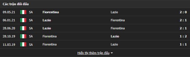 Thành tích đối đầu Lazio vs Fiorentina: