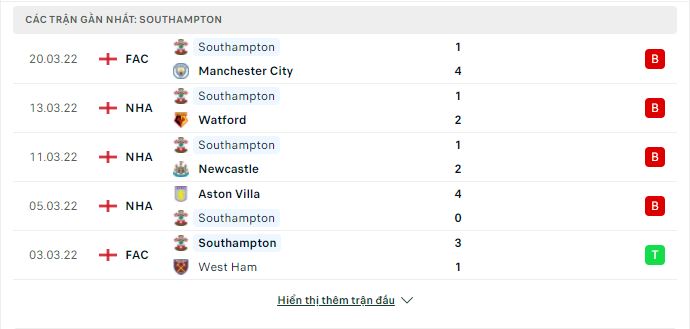 - Phong độ Southampton