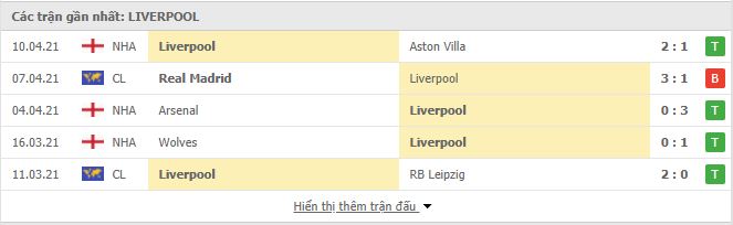 - Phong độ Liverpool