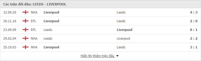 Thống kê phong độ gần đây Leeds vs Liverpool