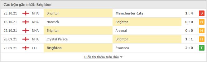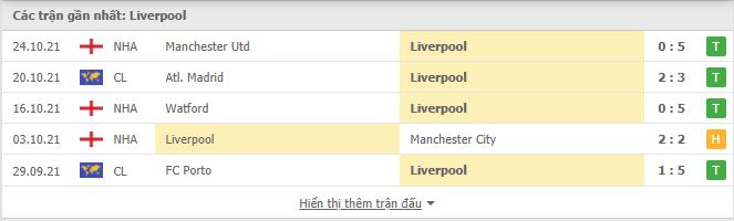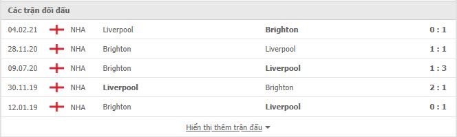 Thống kê phong độ gần đây Liverpool vs Brighton