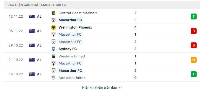 Thống kê phong độ gần đây Macarthur FC vs Melbourne Victory