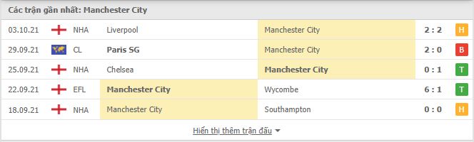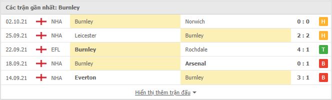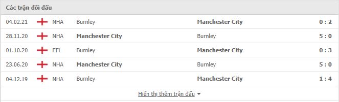 Thống kê phong độ gần đây Manchester City vs Burnley