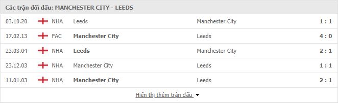 Dù vượt trội hơn Leeds ở thời điểm hiện tại nhưng lịch sử lại nói lên đây là cặp đấu giữa một bên tám lạng và một kẻ nửa cân. Thống kê ở 10 lần gặp nhau gần nhất cho thấy sự cân bằng với 4 chiến thắng cho Manchester City, hai đội hòa nhau 3 lần và Leeds có 3 lần ca khúc khải hoàn. Trong 5 lần gần nhất được chơi trên sân nhà, The Citizens có 2 chiến thắng, 2 trận hòa cùng 1 trận thua.