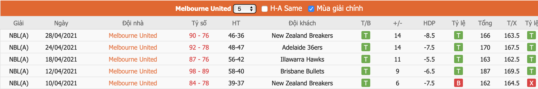 Thống kê cũng chỉ ra mặc dù được đánh giá cao ở trận đấu tới nhưng Melbourne United vốn vẫn không phải là đội bóng quá mạnh về tấn công khi chỉ ghi được trung bình 115 điểm mỗi trận trong 3 trận đón khách đã qua, trong khi ở hàng phòng ngự với những cú block sấm sét và những pha rebound chỉ bị mất trung bình 102 điểm mỗi trận trong thời gian kể trên. Từ đó dẫn đến 6 trên 7 trận ra sân gần nhất của Melbourne United cũng có kết quả chung cuộc về xỉu. Như vậy cửa xỉu vẫn là một lựa chọn sáng hơn với giới đầu tư ở trận này, nhất là khi cũng đã có tới 4 trên 5 trận so tài gần nhất của hai bên cũng có kết quả chung cuộc về xỉu.