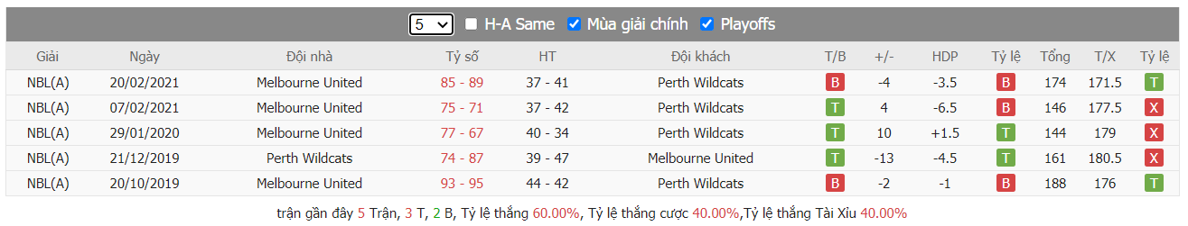 Phong độ gần đây Melbourne United vs Perth Wildcats