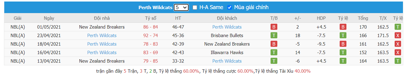 Sắp tới đây tín đồ trái bóng cam sẽ được chứng kiến cặp đấu giữa đội chủ nhà Melbourne United tiếp đón đội khách Perth Wildcats. Không những có được lợi thế sân bãi ở trận này mà Melbourne United còn được đánh giá cao hơn hẳn khi đã thắng tới 5 trên 8 lần chạm trán gần nhất của hai bên kể từ 12/2018 cho tới nay,