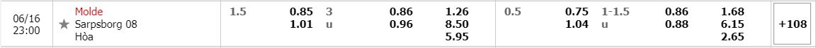 Bảng tỷ lệ kèo trực tuyến trận đấu Molde vs Sarpsborg 08 FF