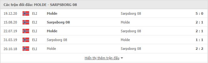 Thành tích đối đầu Molde vs Sarpsborg 08 FF