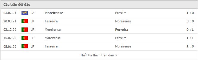 Thống kê phong độ gần đây Moreirense vs Pacos Ferreira