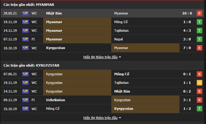 Phong độ gần đây Myanmar vs Kyrgyzstan: