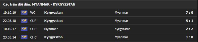 Thành tích đối đầu Myanmar vs Kyrgyzstan: