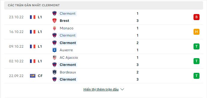 Phong độ gần đây Nantes vs Clermont