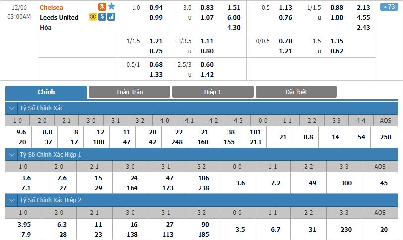 - Tỷ lệ kèo bóng đá Chelsea vs Leeds United
