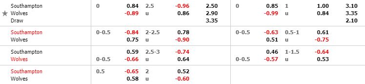 Tỷ lệ kèo bóng đá Southampton vs Wolves